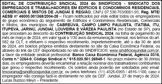 Edital de Contribuição Sindical 2024