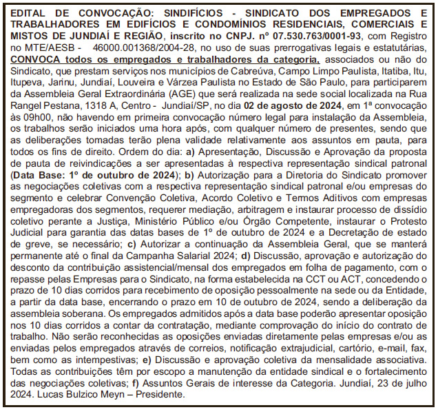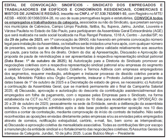 Edital de Convocação – Trabalhadores em EDIFÍCIOS E CONDOMÍNIOS RESIDENCIAIS, COMERCIAIS E MISTOS